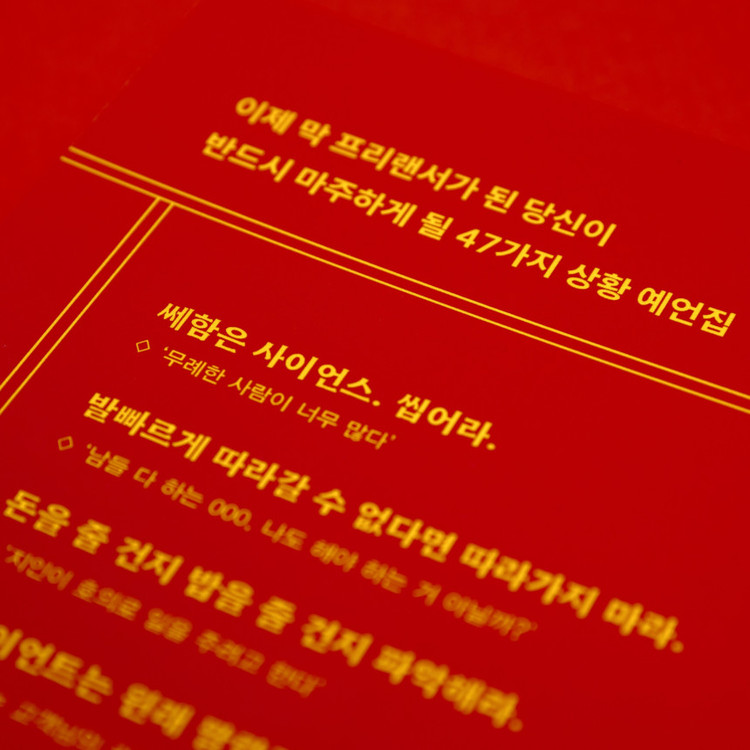 사수없이 홀로 고군분투하고 있는 후배 프리랜서 분들에게 도움이 되었으면 하는 마음에 이 책을 만들게 되었습니다.