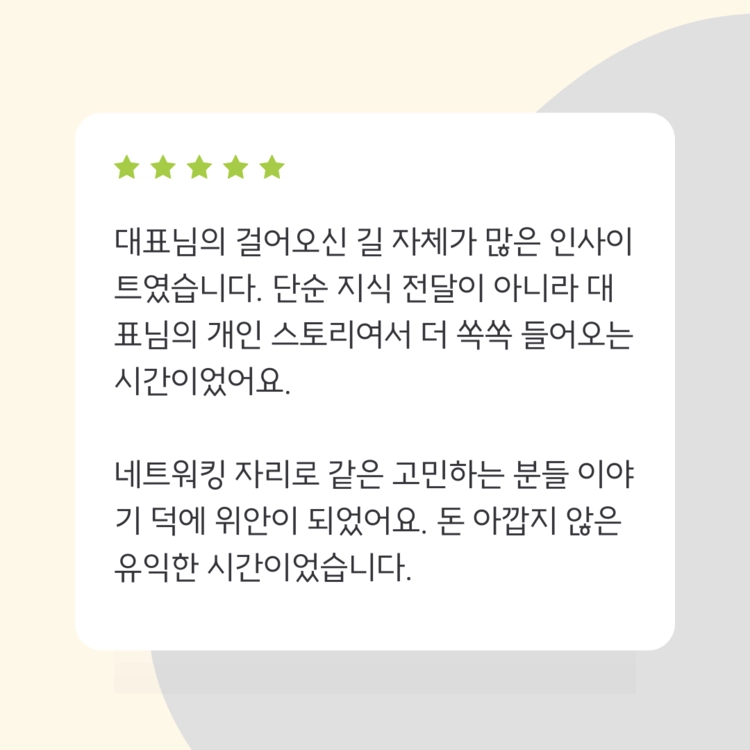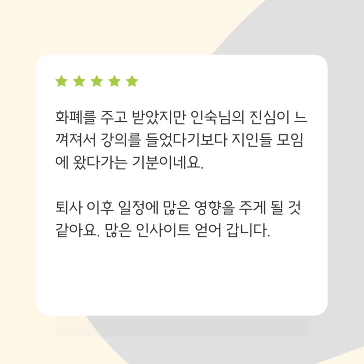 여러분의 질문이 더 풍성한 시간을 만들어낼테니 부담없이 질문 남겨주세요 :)